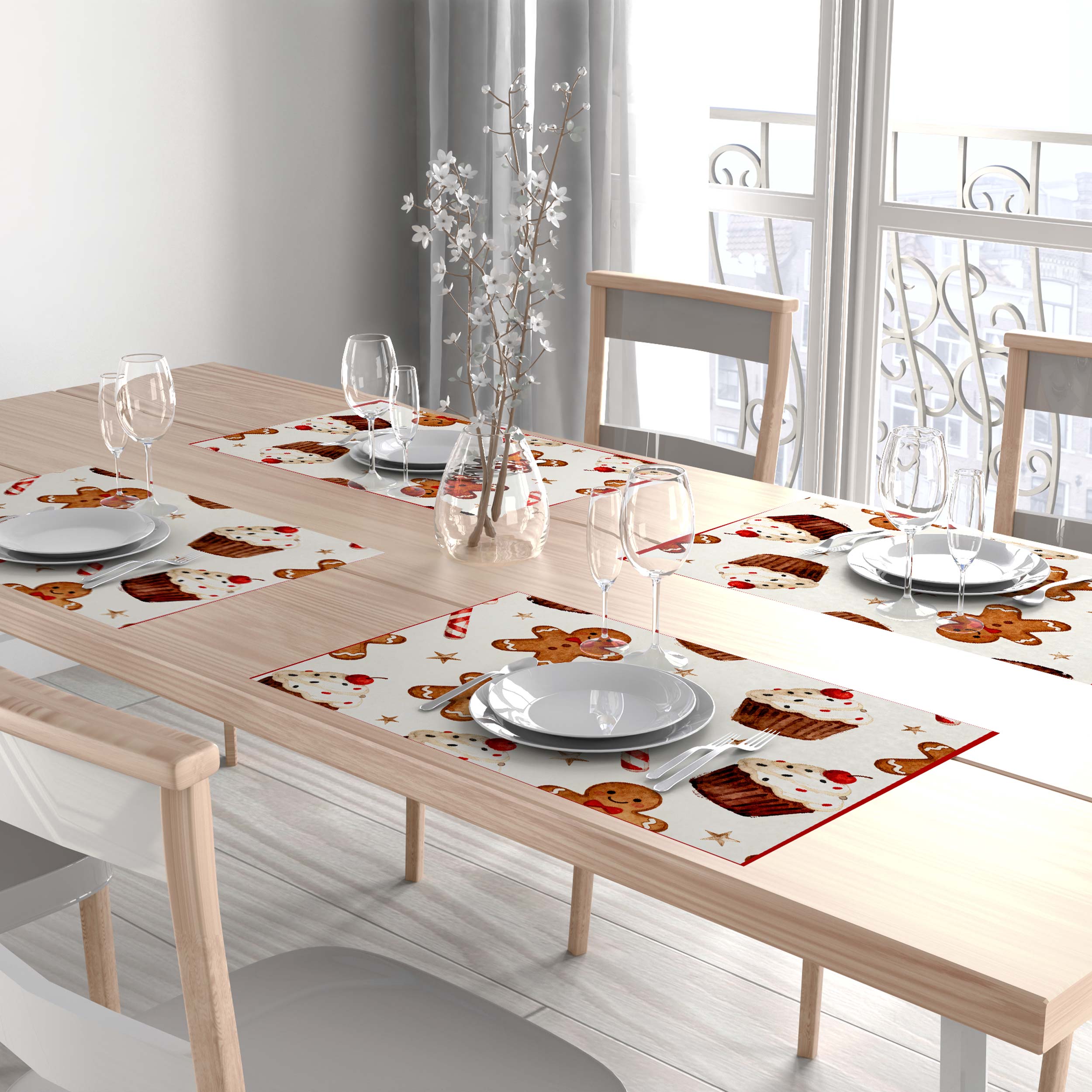 Kit 8 Jogos Americanos Tecido Sublimado Biscoitos e Doces 50x40cm