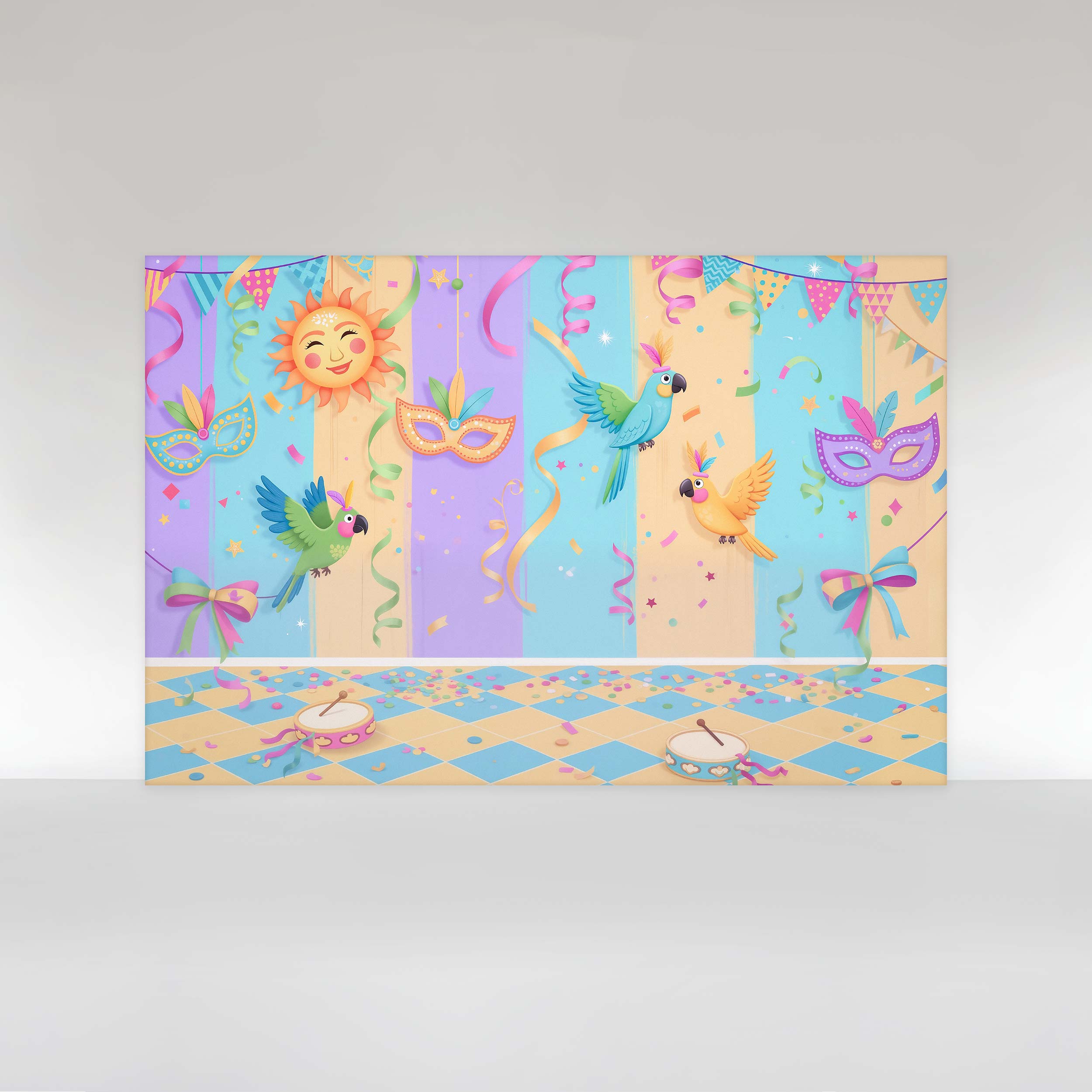 Painel de Festa em Tecido Sublimado Carnaval Infantil Paredes Coloridas