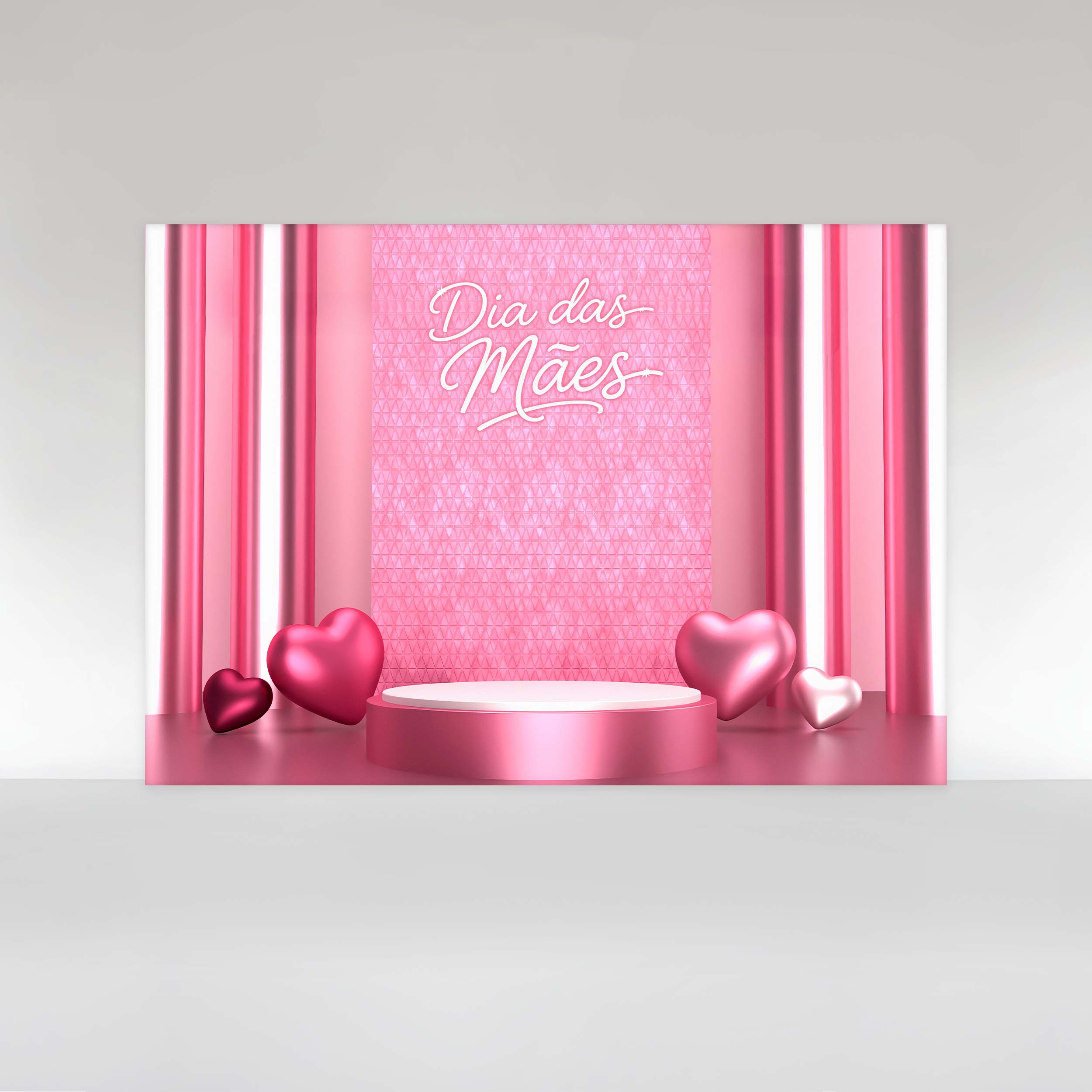 Painel de Festa em Tecido Sublimado Dia das Mães Palco Rosa Com Corações