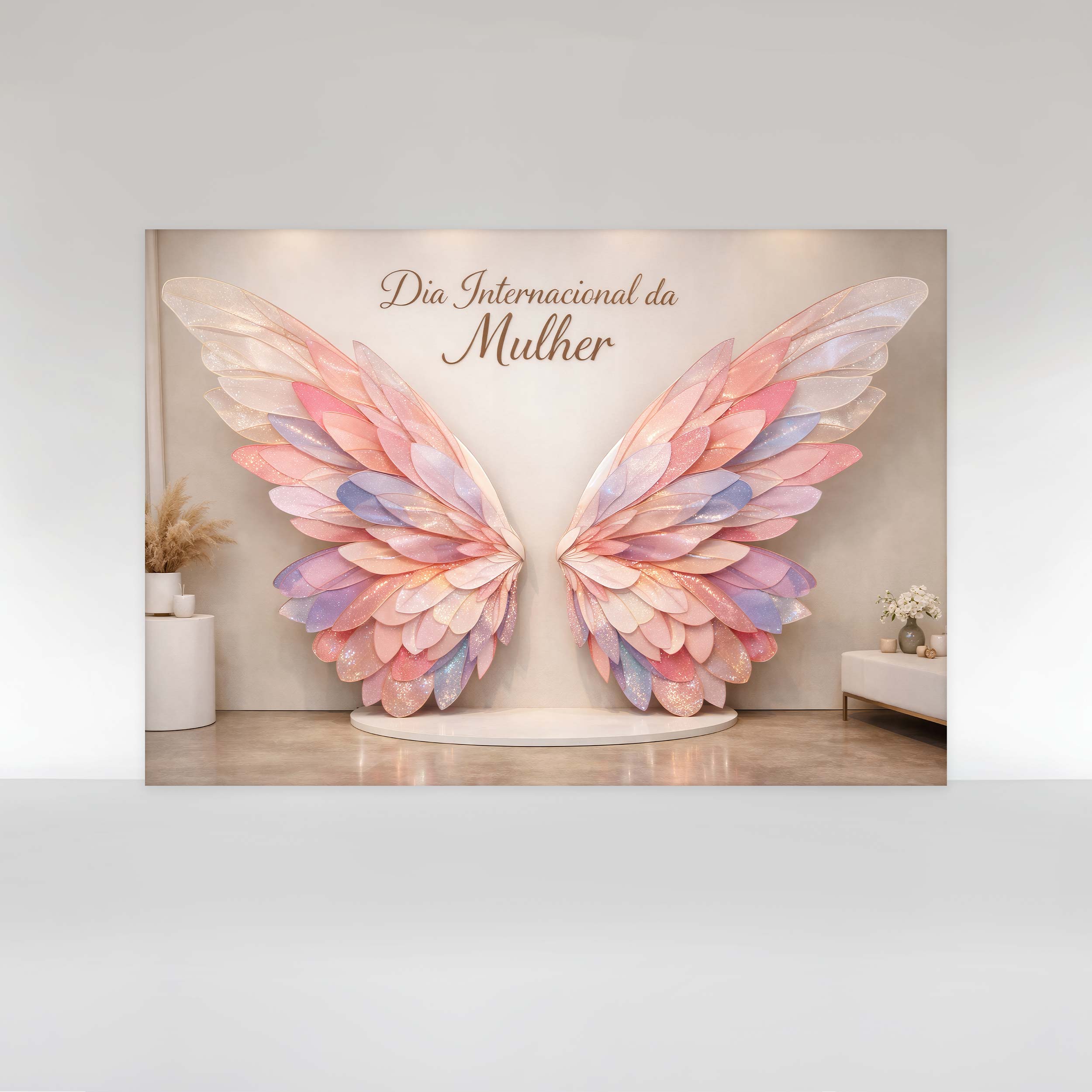 Painel de Festa em Tecido Sublimado Dia Internacional das Mulheres Asas de Borboleta