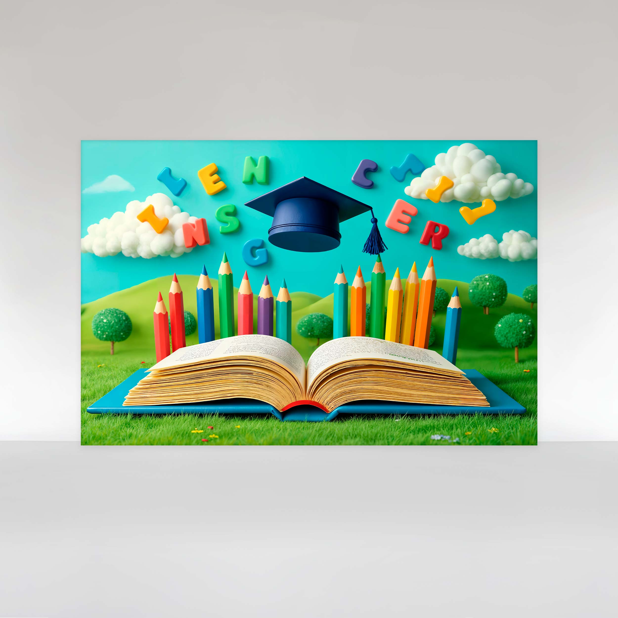 Painel de Festa em Tecido Sublimado Formatura ABC com Livro e Lápis Colorido