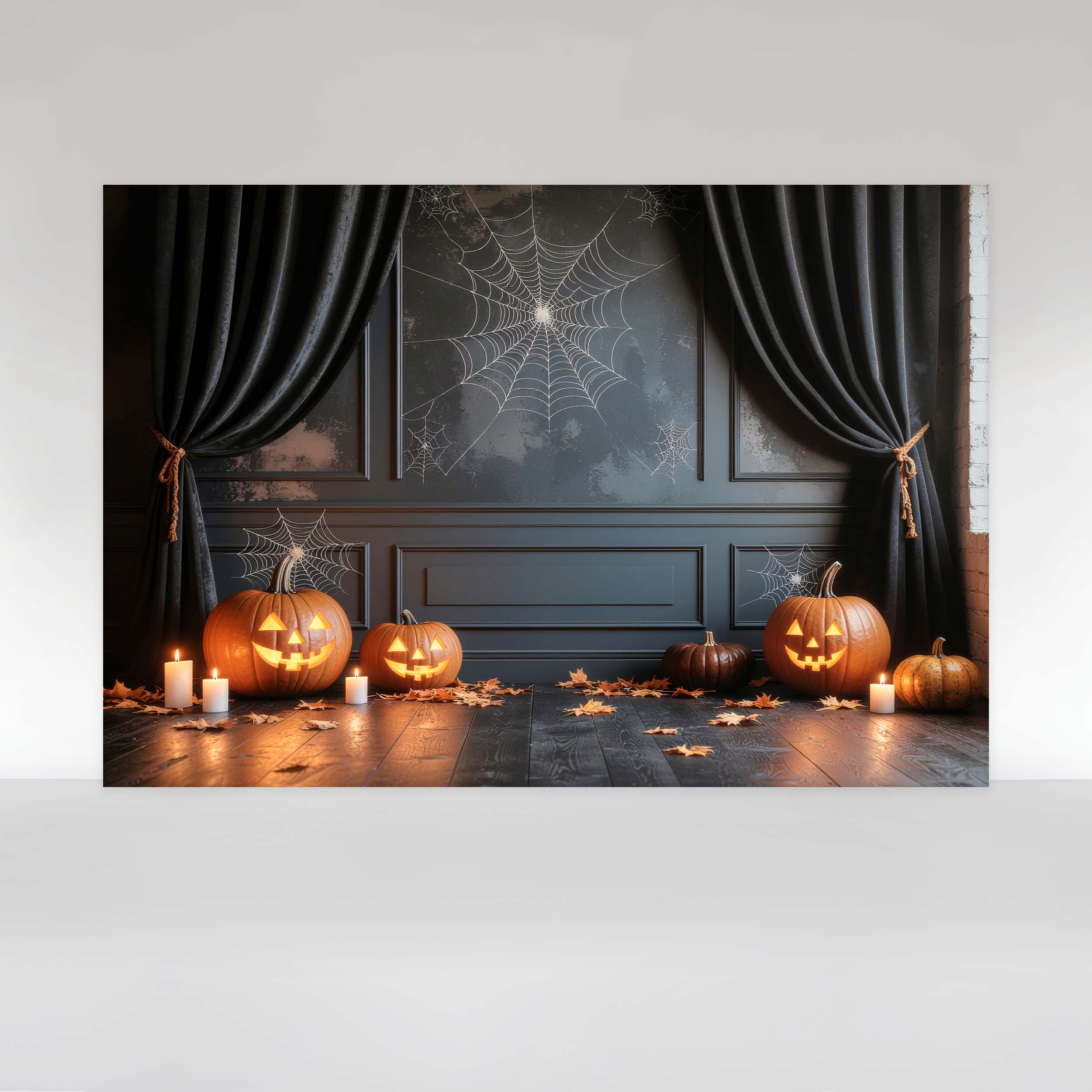 Painel de Festa em Tecido Sublimado Parede de Boiserie e Aboboras de Halloween