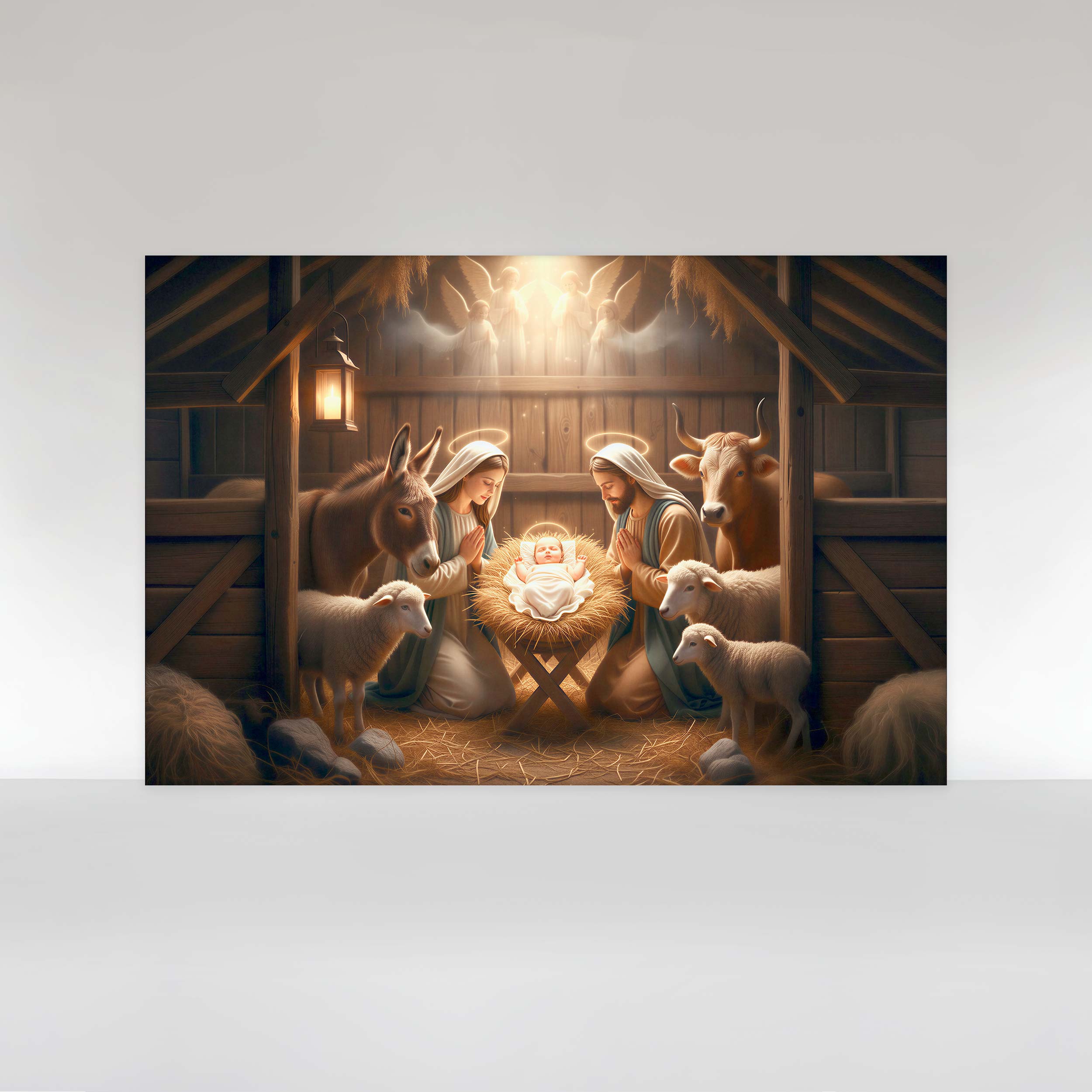 Painel de Festa em Tecido Sublimado Presépio com Anjos de Natal