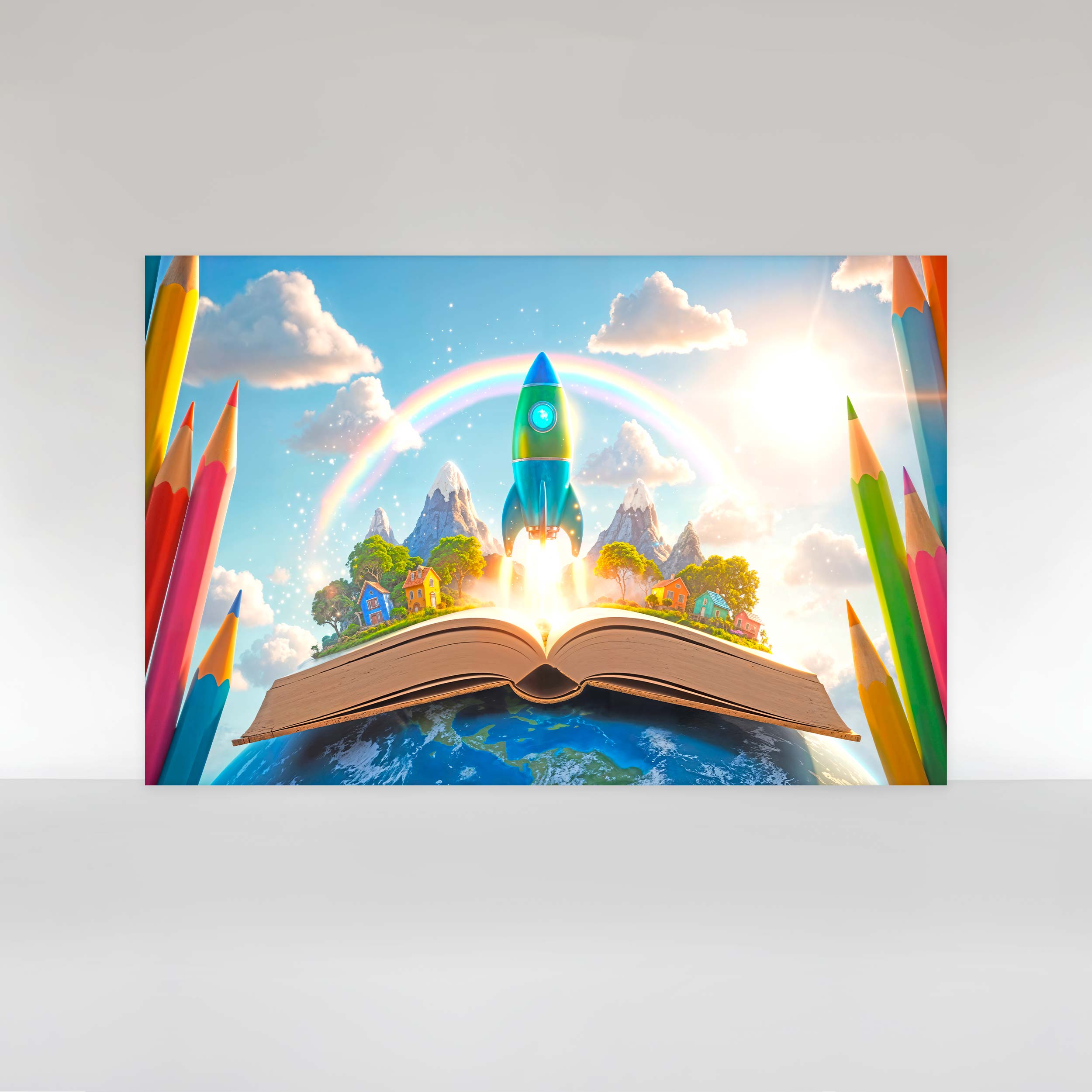 Painel de Festa em Tecido Sublimado Volta às aulas ABC Foguete